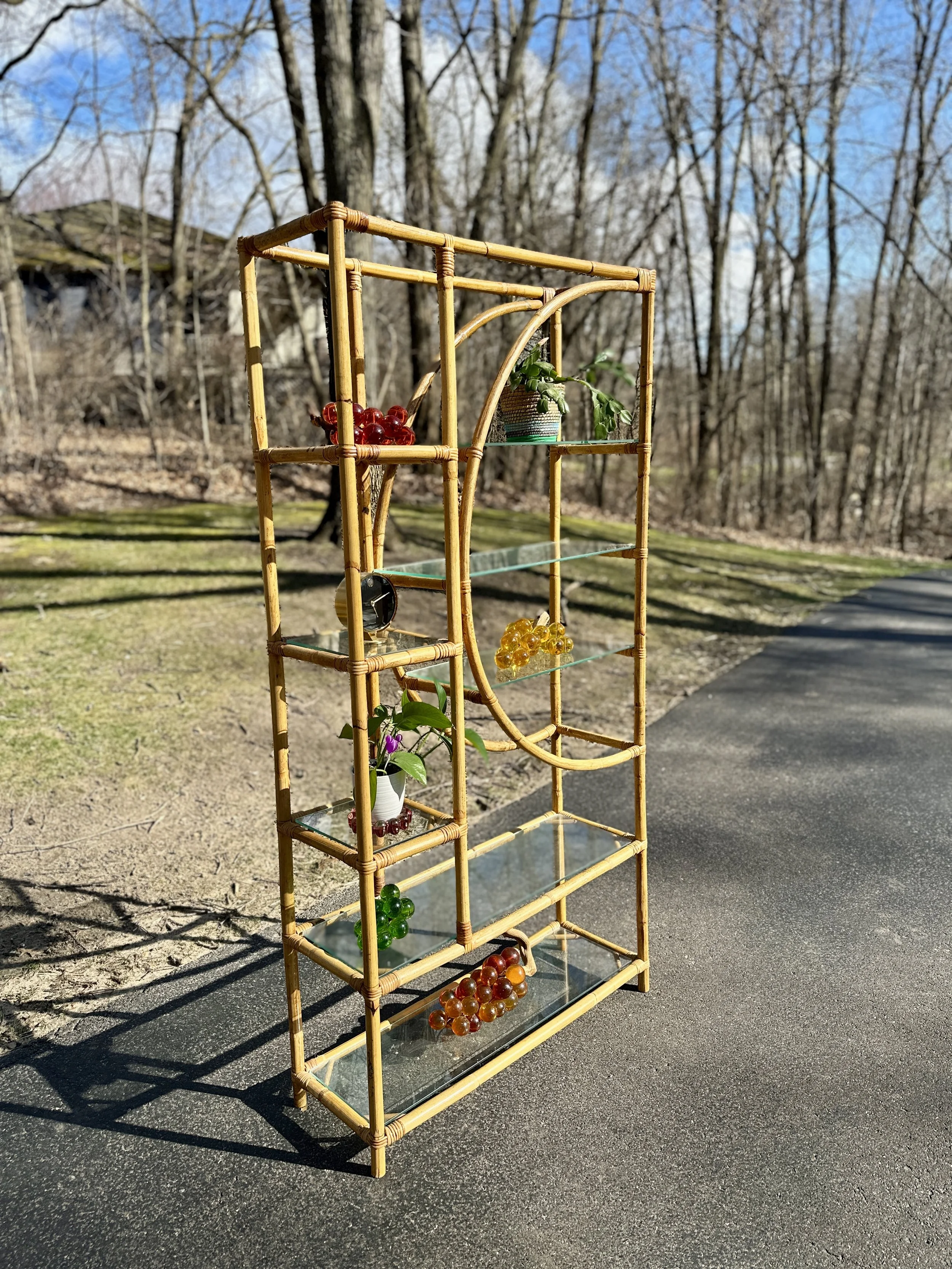 Vintage Bamboo Half Moon Étagère / Bookshelf